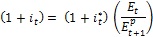 Për momentin, do të marrim si konstant normën e pritur të këmbimit të ardhshëm duke e shënuar si Ep. Sipas këtij supozimi, dhe duke i eliminuar indekset e kohës, relacioni i interesit të paritetit duket si më poshtë