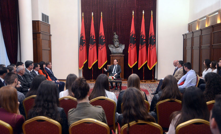 Duke i uruar vëllazërisht mirëseardhjen në Institucionin më të lartë të vendit, Kreu i Shtetit u shpreh: “Unë ju uroj mirëseardhjen! Është një kënaqësi e madhe për mua që ju përgjigjët ftesës sime dhe kaluat një fundjavë në Shqipëri! Ishte një dëshirë e imja dhe e Institucionit të Presidentit që nxënës nga viset shqiptare të vendeve fqinje të kishin mundësi të vinin këtu dhe të bisedonim. E di që ju keni mundësi të vini edhe individualisht, edhe me familjet tuaja, por dëshira ishte që t’ju mirëprisnim si Institucion dhe në mënyrë zyrtare, kështu që unë ju falënderoj që e pranuat ftesën në radhë të parë, dhe shpresoj dhe uroj që t’ia keni kaluar mirë këto ditë!”, tha Presidenti Nishani.