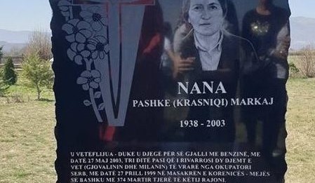 Sot, një grup i aktivistëve nga Qendra e Lëvizjes VETËVENDOSJE! në Gjakovë, i përbërë nga kryetari, Agon Batusha, deputetja Arbërie Nagavci, asambleiste, anëtarë të kryesisë, dhe aktivistë të tjerë, bënë nderime tek varri i Pashke Markajt në Korenicë. Emri i nënës Pashke dhe historia e saj nuk janë të panjohura për qytetin tonë, por ato duhen njohur e kujtuar nga mbarë vendi. Me 27 prill 1999, në masakrën makabër të kryer nga okupatori serb në fshatrat Meje e Korenicë, ndër 374 martirët e rënë, ishin edhe dy djemtë e nënës Pashke, Gjovalini dhe Milani. Siç ka ndodhur edhe me shumë të tjerë, ndonëse ishin vrarë, Gjovalini e Milani u cilësuan si të zhdukur deri në vitin 2003, kur trupat e tyre u kthyen dhe u rivarrosën. Pritja katër vjeçare u shndërrua në agoni shekullore për nënën Pashke. Ndonëse fija e fundit e shpresës për kthimin e tyre të gjallë nuk ishte djegur ende, ajo kishte pohuar se nuk do të jetonte më nëse djemtë nuk i kthehen të gjallë. Me 24 maj 2003 trupat e Gjovalinit dhe Milanit veçse ishin kthyer dhe tash po rivarroseshin. Ajo fije e fundit e shpresës së nënës Pashke se ata mund të kthehen të gjallë tashmë u dogj. Vetëm tri ditë më pas, nëna Pashke i vuri flakën vetës për t’i dhënë fund jetës e dhimbjes për bijtë e saj. Sakrifica të vetëflijimit si ajo e Oso Kukës tek Lahuta e Malcis, të cilën nëna Pashke e dinte përmendësh, nuk janë të panjohura për popullin tonë. Por, dhimbja e revolta e një nëne të cilës ia rrëmbyen, vranë, e morrën peng trupat e të bijve, e ndezur në flakë, është sakrificë sublime e llojit të vetë. Nëna Pashke na bënë ta kujtojmë qëndresën e sakrificën e të gjitha grave – nënave, bashkëshorteve, motrave, e bijave, përgjatë gjithë historisë sonë. Ajo nuk na lë të harrojmë për asnjë moment se drejtësia për secilin rast është minimumi që duhet kërkuar për dinjitetin e tyre – sepse koha e vuajtjet e tyre janë të pakthyeshme e paharrueshme. Këto histori dhe domosdoshmërinë e drejtësisë nuk mund t’i harrojmë për asnjë moment. Ato janë të freskëta dhe duhet kujtuar sidomos në këtë kohë kur diskutohet me shumë lehtësi për kompromiset me Serbinë dhe ndarjen e Kosovës.