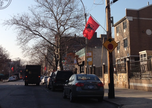 Flamujt kuq e zi me Shqiponjën e zezë dykrena janë vendosur nga Shkumbin Hasangjekaj dhe Shkumbin Balidemaj në një nga rrugët kryesore të qytetit Brooklyn, Bay Parkway ku jetojnë shumë shqiptarë.