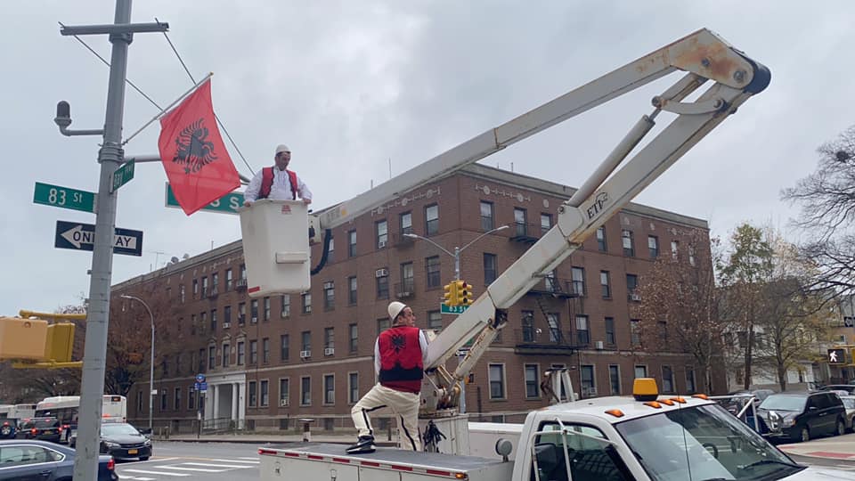 Flamujt kuq e zi me Shqiponjën e zezë dykrena janë vendosur nga Shkumbin Hasangjekaj dhe Shkumbin Balidemaj në një nga rrugët kryesore të qytetit Brooklyn, Bay Parkway ku jetojnë shumë shqiptarë.