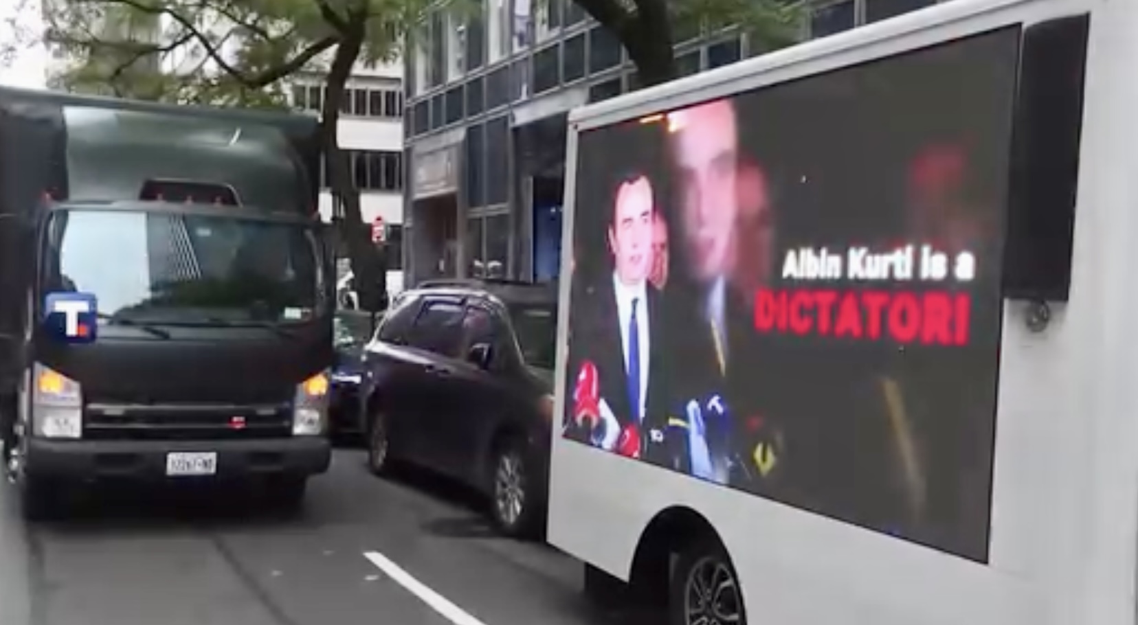 Një ngjarje e pazakontë dhe provokuese ka ndodhur në qendër të Nju Jork-ut, aty ku jeton njëra nga diasporat më të mëdha dhe më të fuqishme shqiptare. Tre kamionë, të pajisur me ekrane gjigante LED, janë parë duke qarkulluar në rrugët e Manhatan-it, deri edhe në sheshin më të njohur – Times Square – duke transmetuar pamje propagandistike kundër Kosovës.
