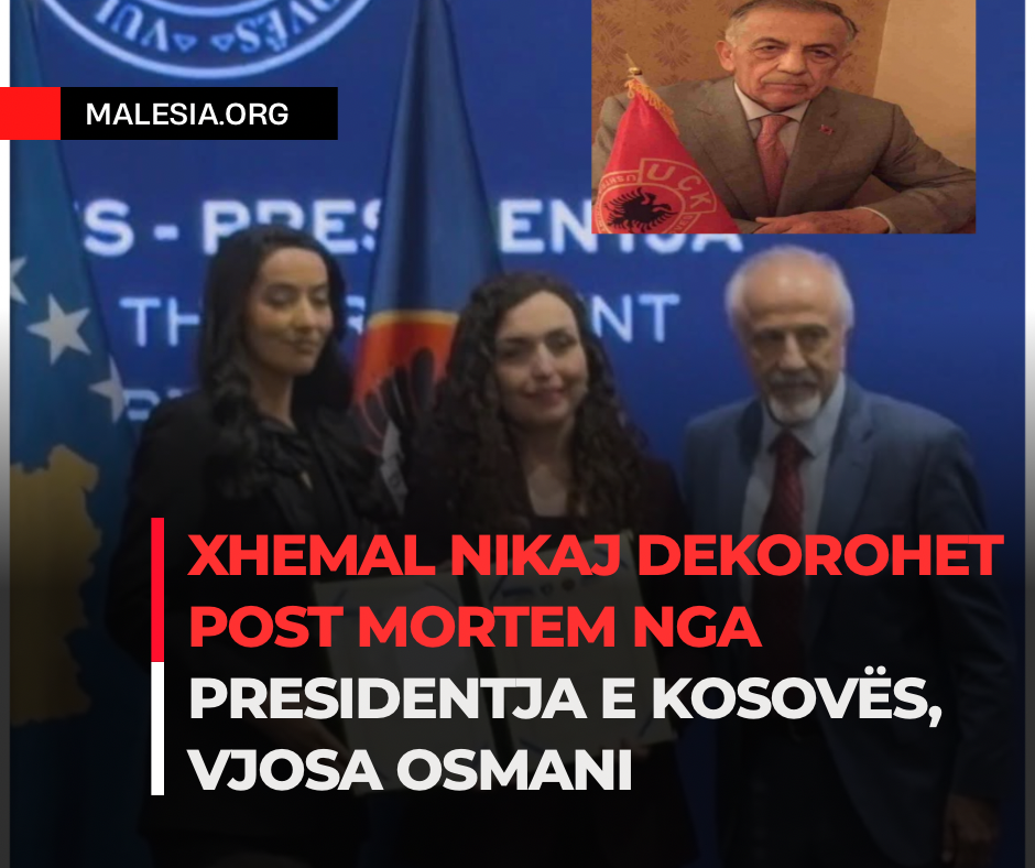Dekoratën “Për Guximin e Jashtëzakonshëm për Mbrojtjen dhe Afirmimin e Identitetit Kombëtar” e pranoi vajza e tij, Besa Nikaj.